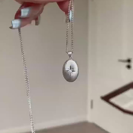 Introducing our North Star Oval Pendant Necklace—a timeless piece that combines celestial inspiration with modern elegance. Available in both radiant gold and sleek silver stainless steel, this necklace features a delicate oval pendant adorned with a sparkling starburst center, symbolizing guidance, hope, and inner light.