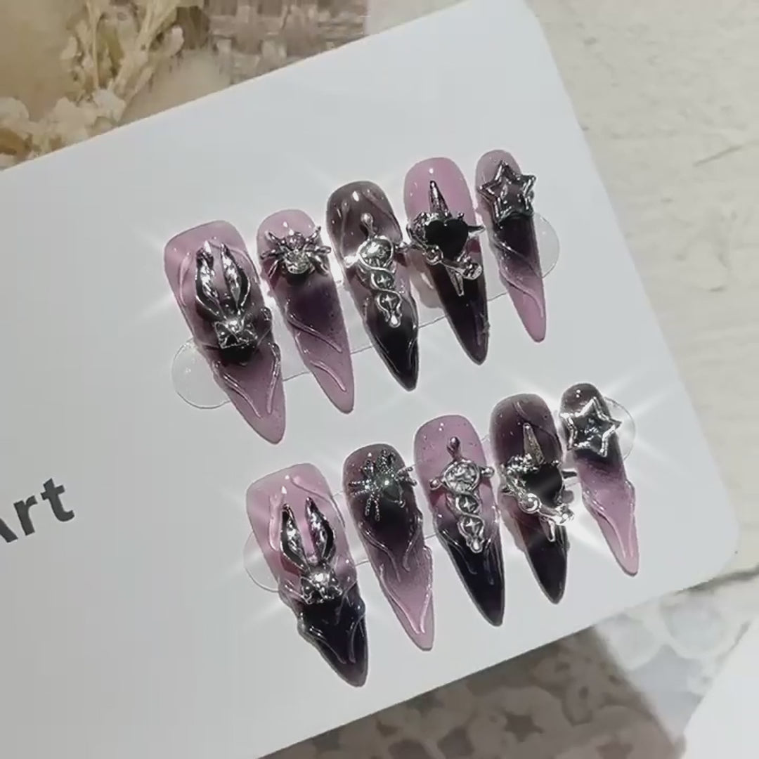- Intricate metal charms: spider, cross, rabbit, and star decorations