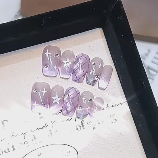 JINGGWW Lavender Starry Night Press-On Nails - 10pcs