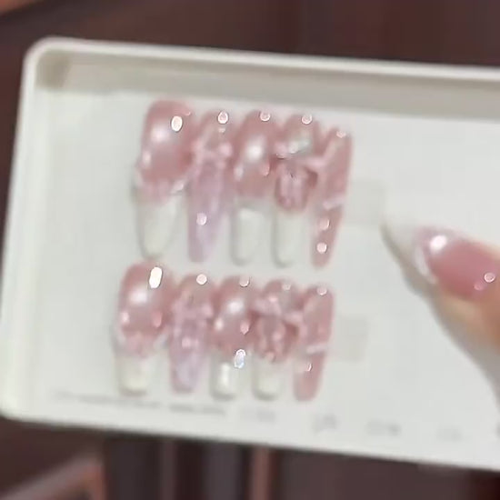 JINGGWW Sweet Bow Pink Gradient Princess Press-On Nails - 10pcs